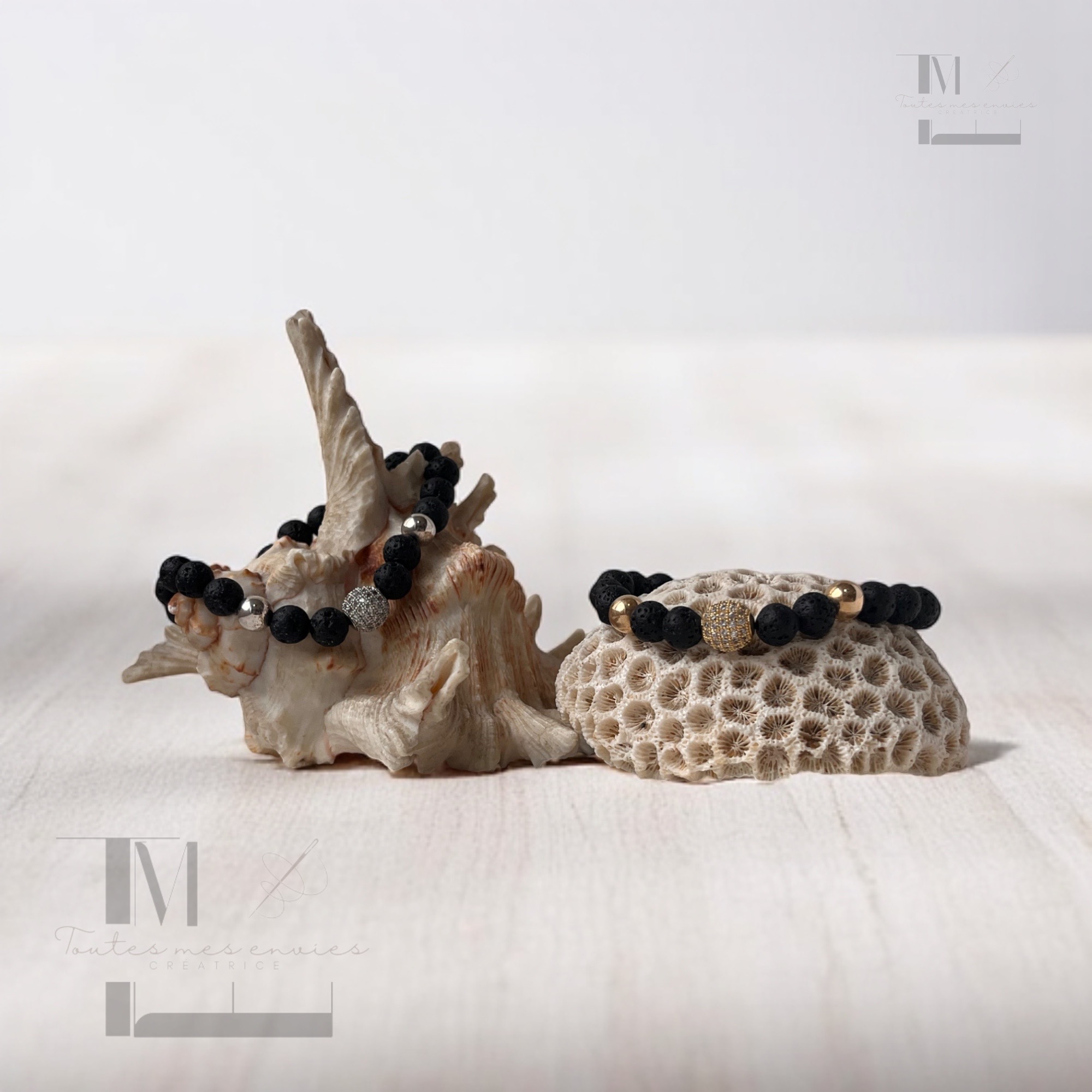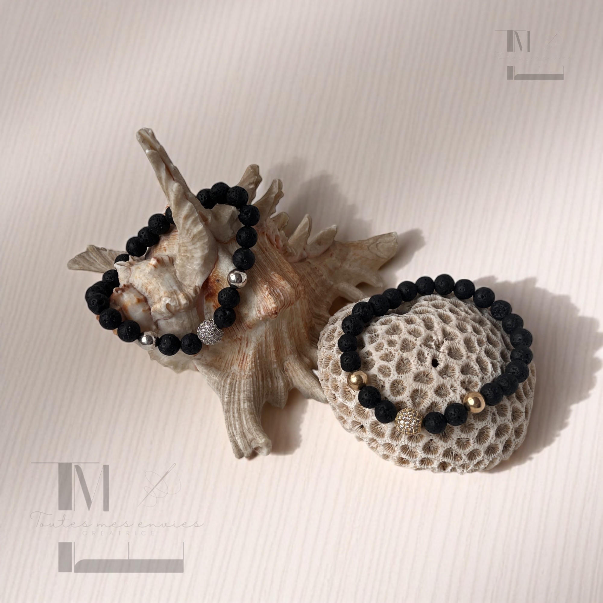 Pour magnifier l’aspect sombre et texturé de la lave, j’ai ajouté des perles précieuses qui apportent un véritable coup d’éclat. Je vous offre la possibilité de choisir l’option qui correspond le mieux à sa personnalité :