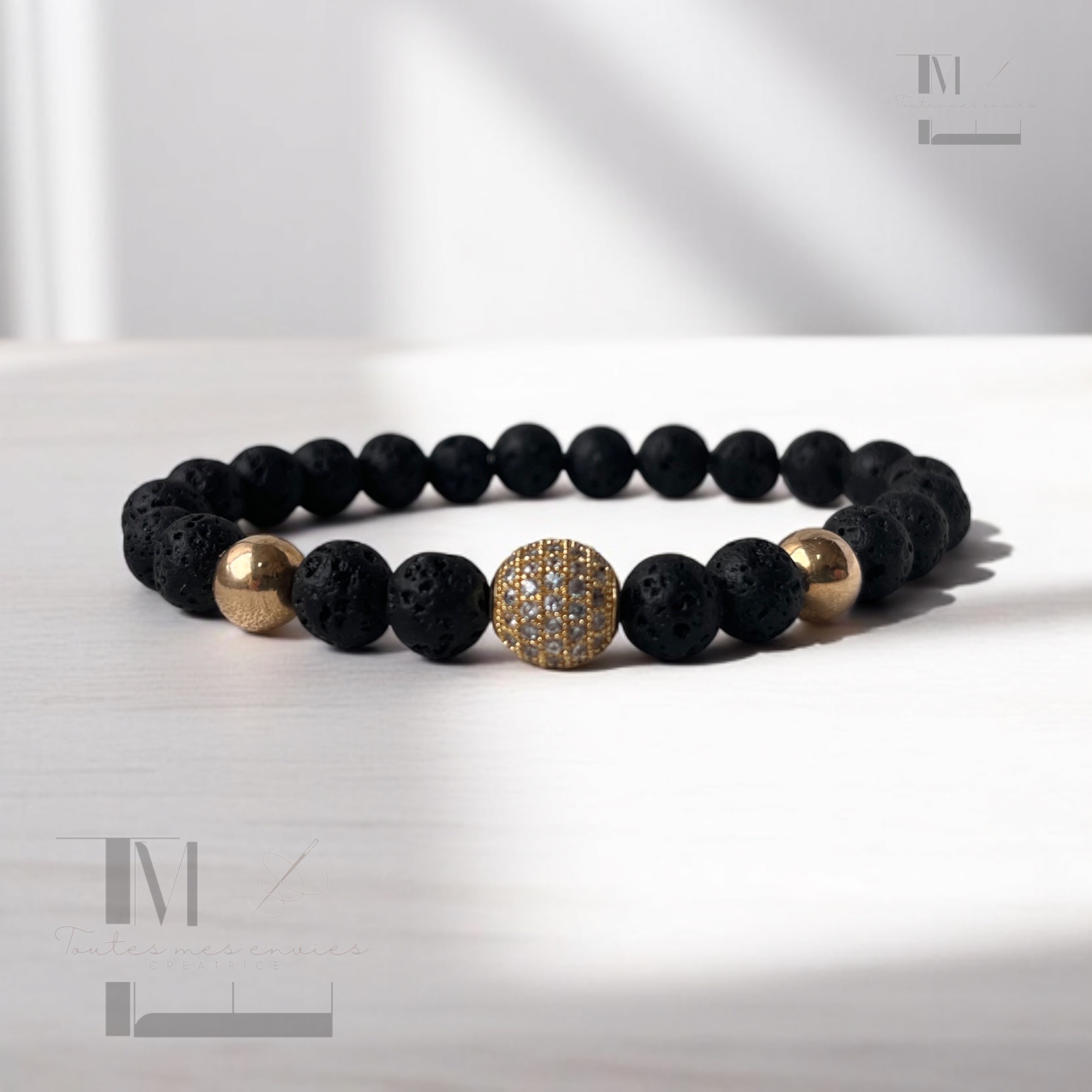 La force du caractère de cet homme, je l’ai symbolisée par les perles en pierre de lave naturelle de 8mm. Issues des profondeurs volcaniques, ces perles sont réputées pour être une source d’ancrage et de courage. Elles confèrent au bracelet un aspect brut et viril. Par conséquent, il s’agit d’un cadeau qui a du sens, au-delà de sa beauté. De plus, son style artisanal montre que vous avez pris le temps de choisir une création unique, loin des productions de masse.