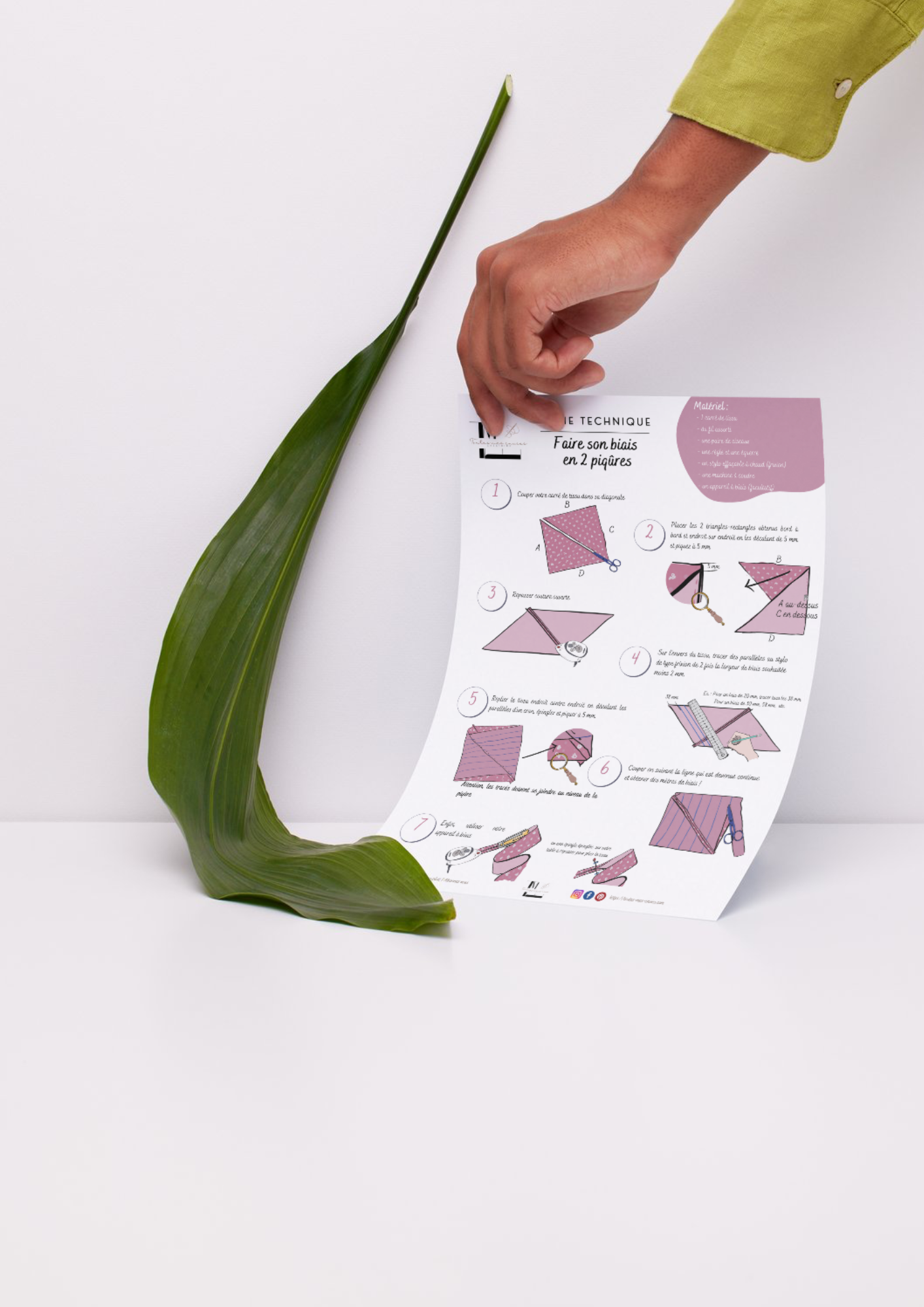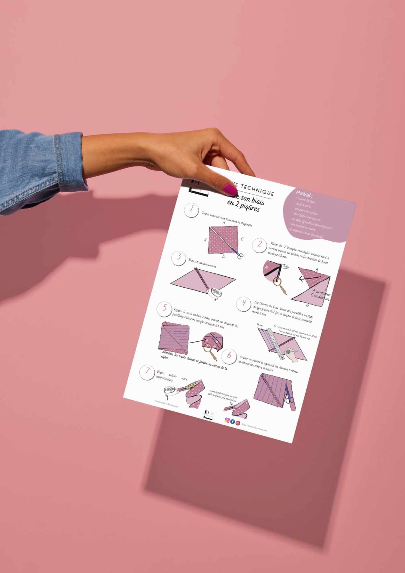 Grâce à cette fiche technique “Faire son biais en 2 piqûres”, découvrez comment fabriquer vous-même un biais souple et parfaitement ajusté à vos tissus.