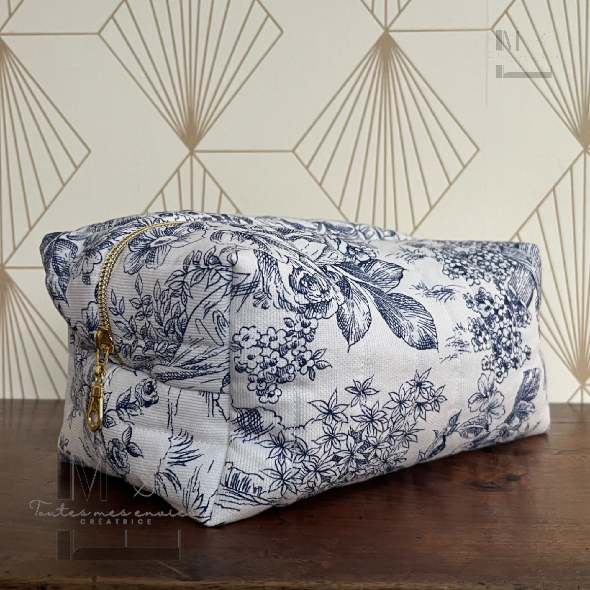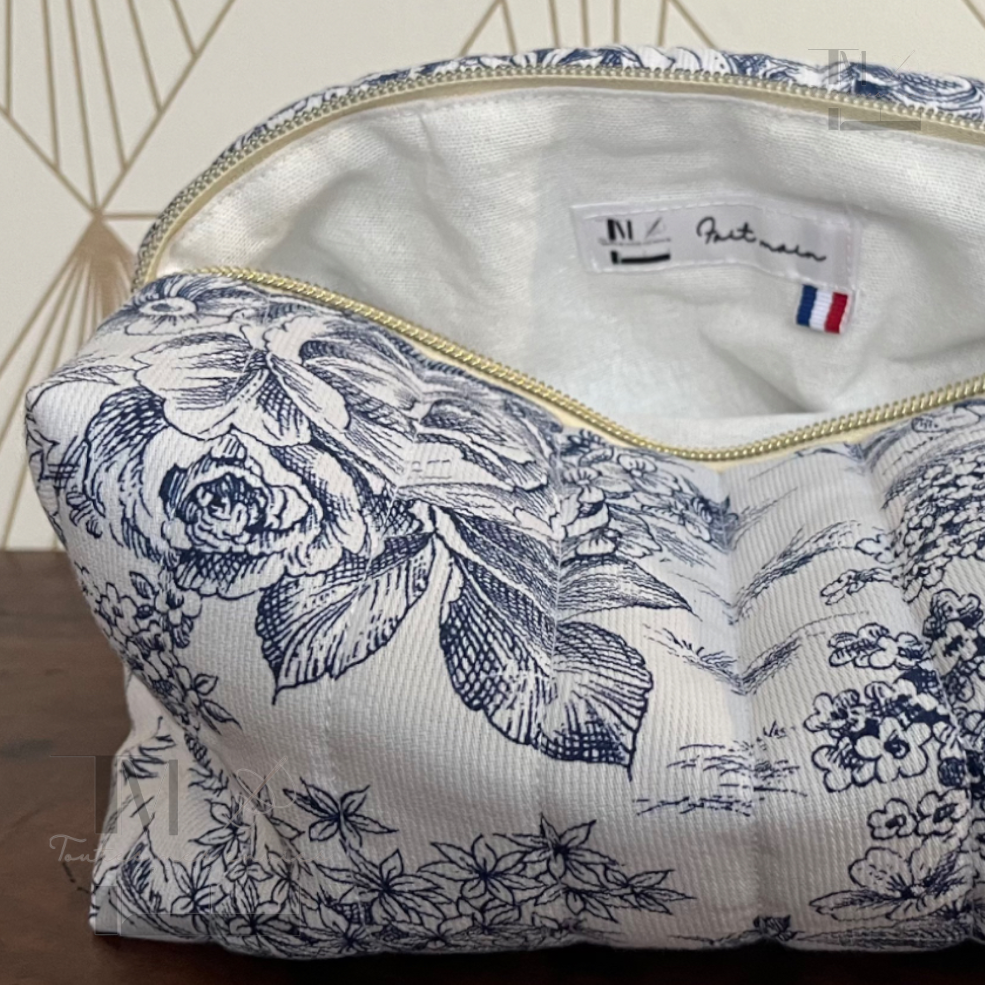 Apportez une touche de raffinement à votre quotidien avec cette trousse de toilette en toile de Jouy. Elle est entièrement confectionnée à la main dans mon atelier en Isère. Chaque pièce est réalisée avec soin dans une belle toile de coton imprimée. L’intérieur est doublé d’un lin mélangé naturel pour une finition chic et durable.